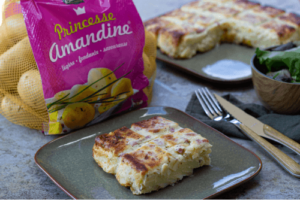 - Mélanger cette préparation aux pommes de terre et poireaux et verser dans le moule.