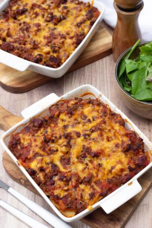 - Émincer l’oignon et l’ail et les faire revenir dans l’huile d’olive dans une sauteuse. Ajouter la viande hachée et laisser cuire pendant quelques minutes à feu moyen en remuant régulièrement. Pendant ce temps, mélanger le concentré de tomates, avec le cumin et les épices à chili.