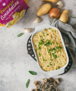 - Préchauffez le four à 200°C. Coupez les pommes de terre Princesse Amandine en quartiers.