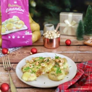 - Enfournez ensuite à 200°C pendant 20 minutes pour obtenir des pommes de terre bien dorées et croustillantes. A mi-cuisson, ajoutez les noisettes sur la plaque.